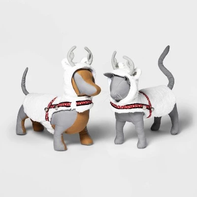 Dress your furry friends for the holidays with the Dog and Cat Hoodie Costume from Wondershop™. This full-body pullover costume showcases a fuzzy white design with snowflake accents and cute silver bells. Plus, the top of the hood is adorned with antlers for extra fun. Soft fabric and hook-and-loop closures make this hoodie costume one your pet will want to wear.